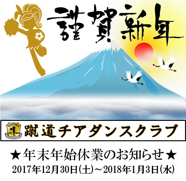 蹴道チアダンスクラブは、12月30日(土)~1月3日(水)の期間、年末年始の為お休みとなります。