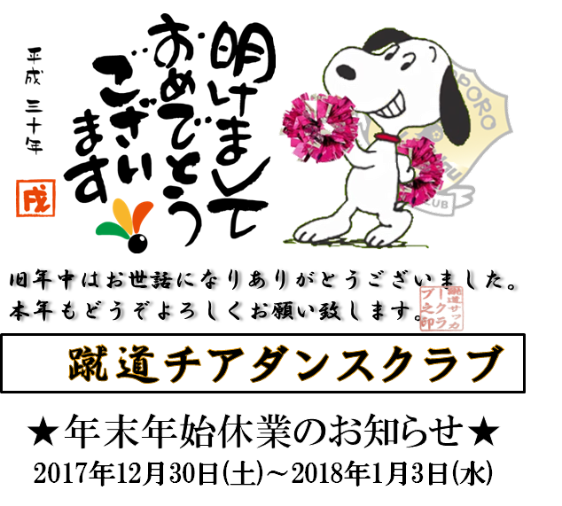 蹴道チアダンスクラブは、12月30日(土)~1月3日(水)の期間、年末年始の為お休みとなります。