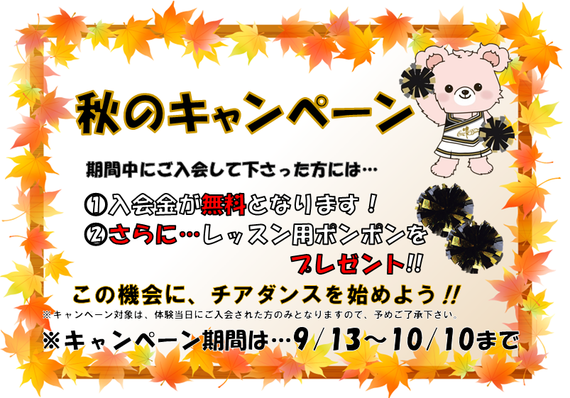 この秋、蹴道チアダンスクラブでは、期間限定でキャンペーンを実施します。
