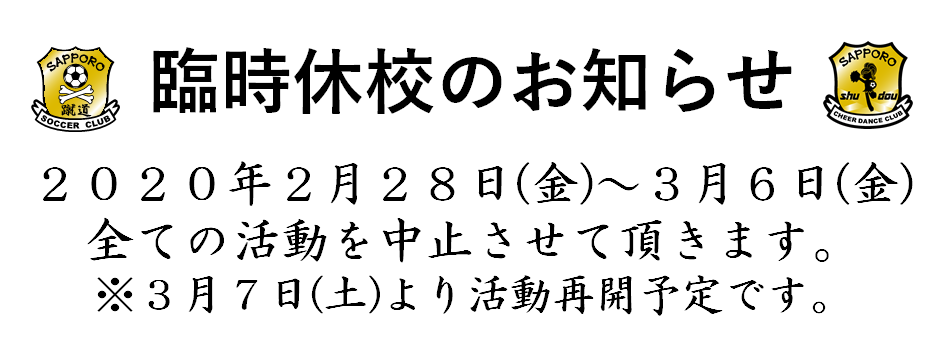 蹴道チアダンスクラブでは、期間中は全ての活動を中止とさせて頂きます。ご理解とご了承の程よろしくお願い致します。
