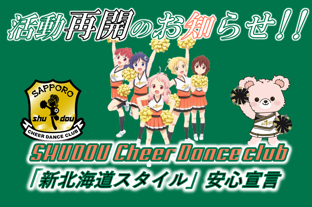 新型コロナウイルス感染拡大による、緊急事態宣言も解除となり、札幌市内の学校・公共施設も再開となりますことを受け、蹴道チアダンスクラブでも、6月1日より全スクールの活動を再開することとなります